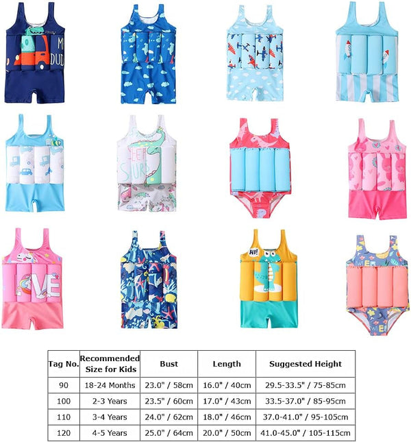 Unlike others, our suit combines safety, comfort, and style in one. It offers adjustable floats for a perfect fit and fun prints kids love, ensuring a delightful swimming experience.
